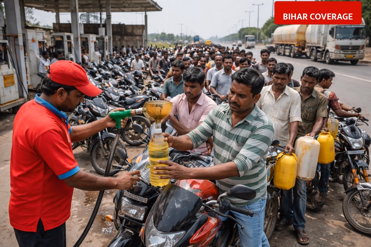 The fuel crisis has badly affected transport and daily activities in Motihari. People are waiting for hours in the heat at the few functional pumps, and many return empty-handed. While some earlier reports suggested the shortage was caused by rumors and depot closures during Eid, the ground reality shows a continued crisis. The local supply department is facing questions as the illegal trade continues on the main highways while the common man struggles to find fuel at fair prices.