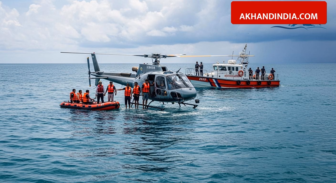 A major accident was averted in the Andaman and Nicobar Islands on Tuesday morning. A Pawan Hans helicopter made an emergency landing in the sea near Mayabunder due to technical issues. There were 7 people on board, including two pilots and five passengers. Authorities confirmed that everyone was rescued safely immediately after the incident and taken to the hospital for a check-up.